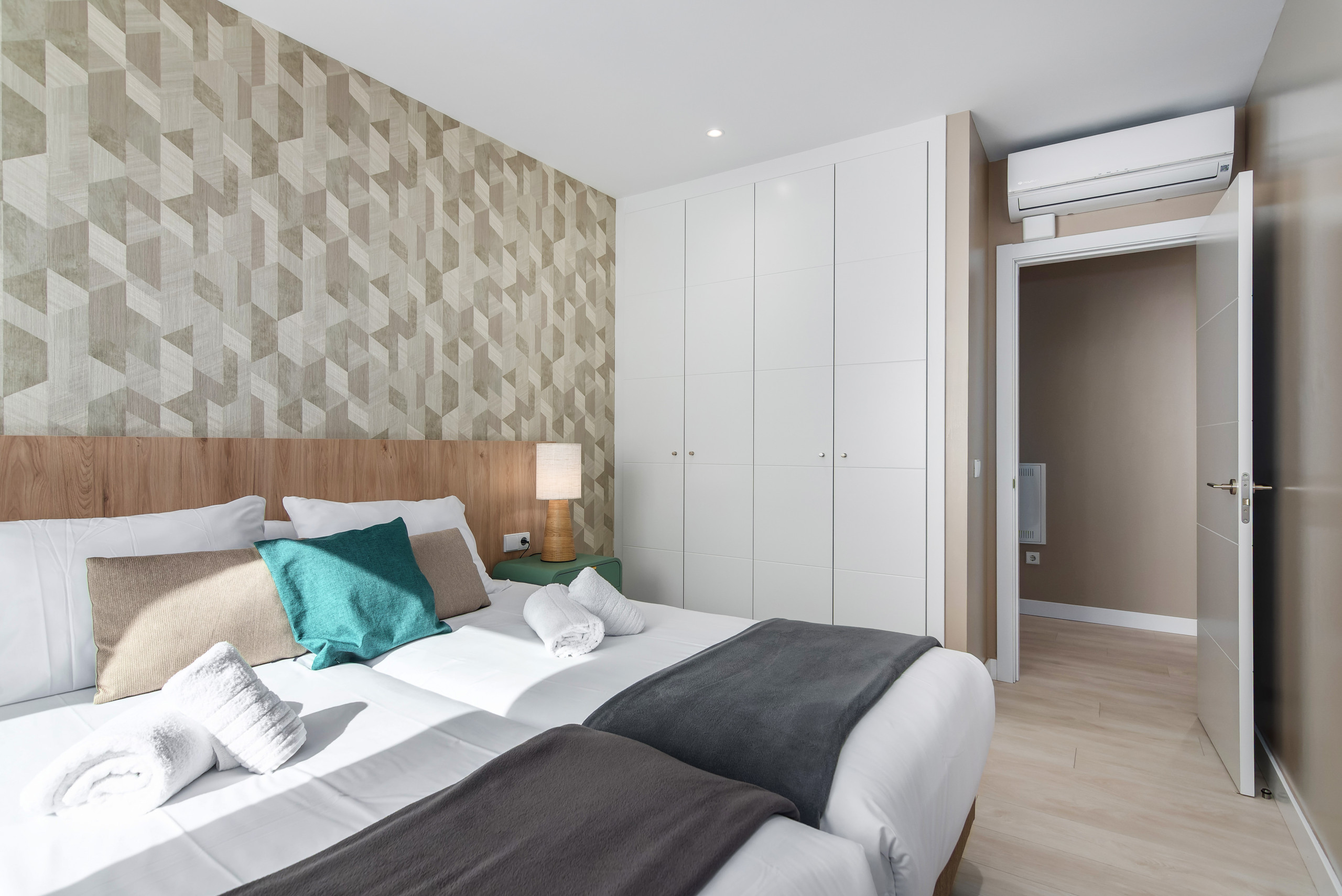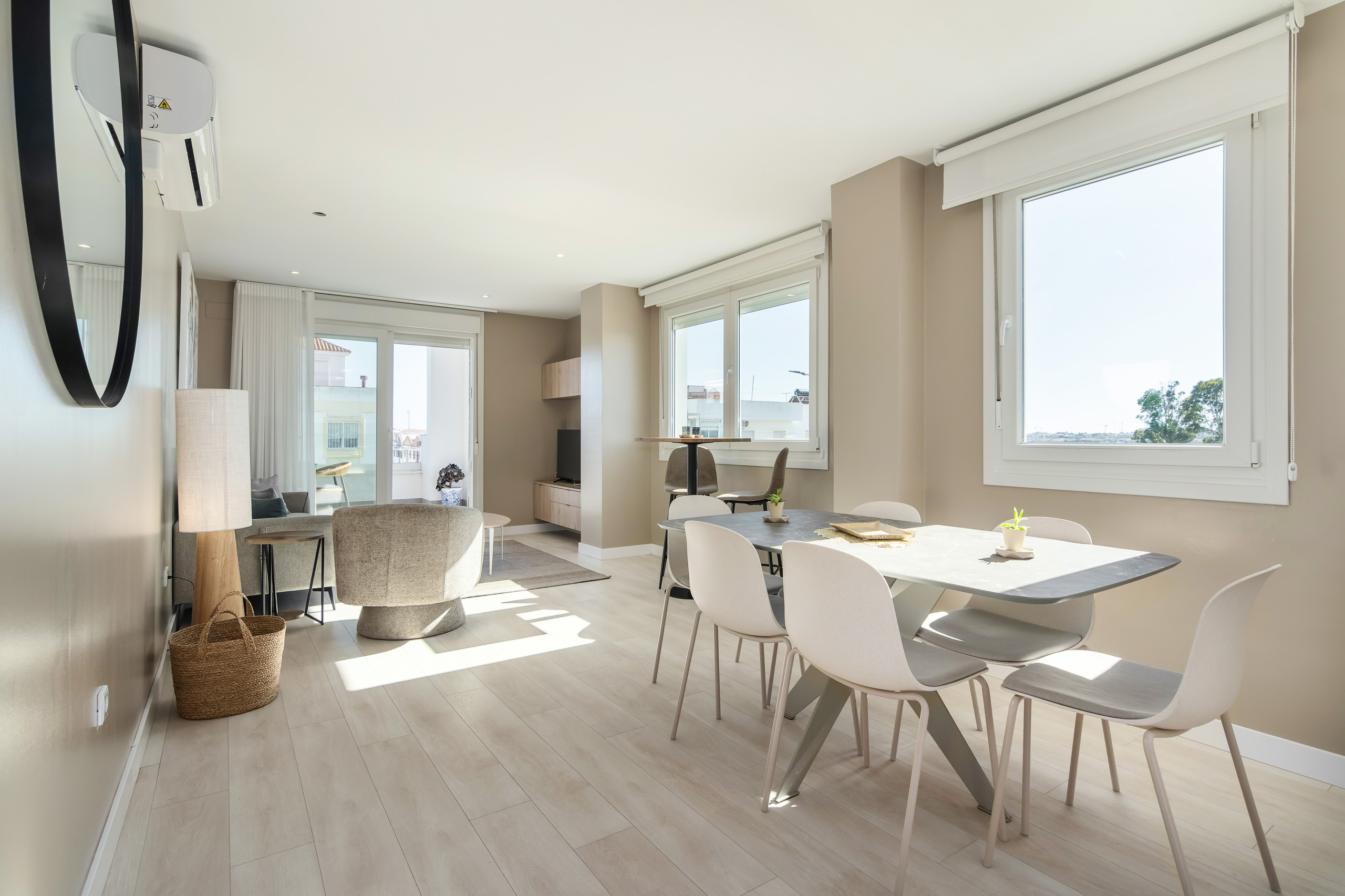 El apartamento ofrece aire acondicionado y calefacción por bomba de calor para garantizar el máximo confort en cualquier época del año. Además, cuenta con conexión WiFi gratuita, televisión y plancha para tu comodidad.