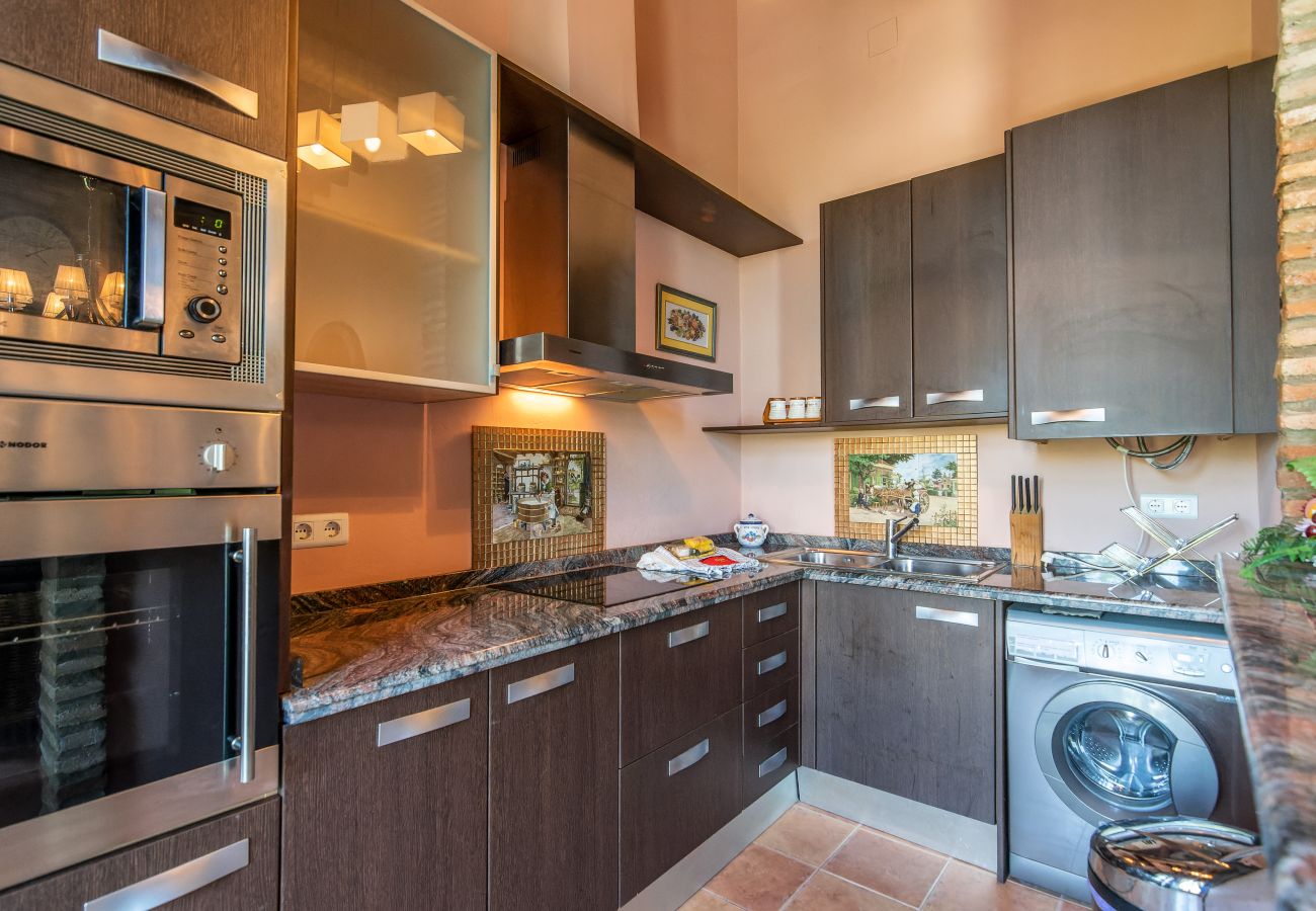 La cocina independiente está completamente equipada con electrodomésticos de última generación, incluyendo nevera, congelador, lavadora, lavavajillas, horno, máquina de café, tostadora y exprimidor. Perfecta para preparar deliciosas comidas en familia o para disfrutar de un desayuno tranquilo.
