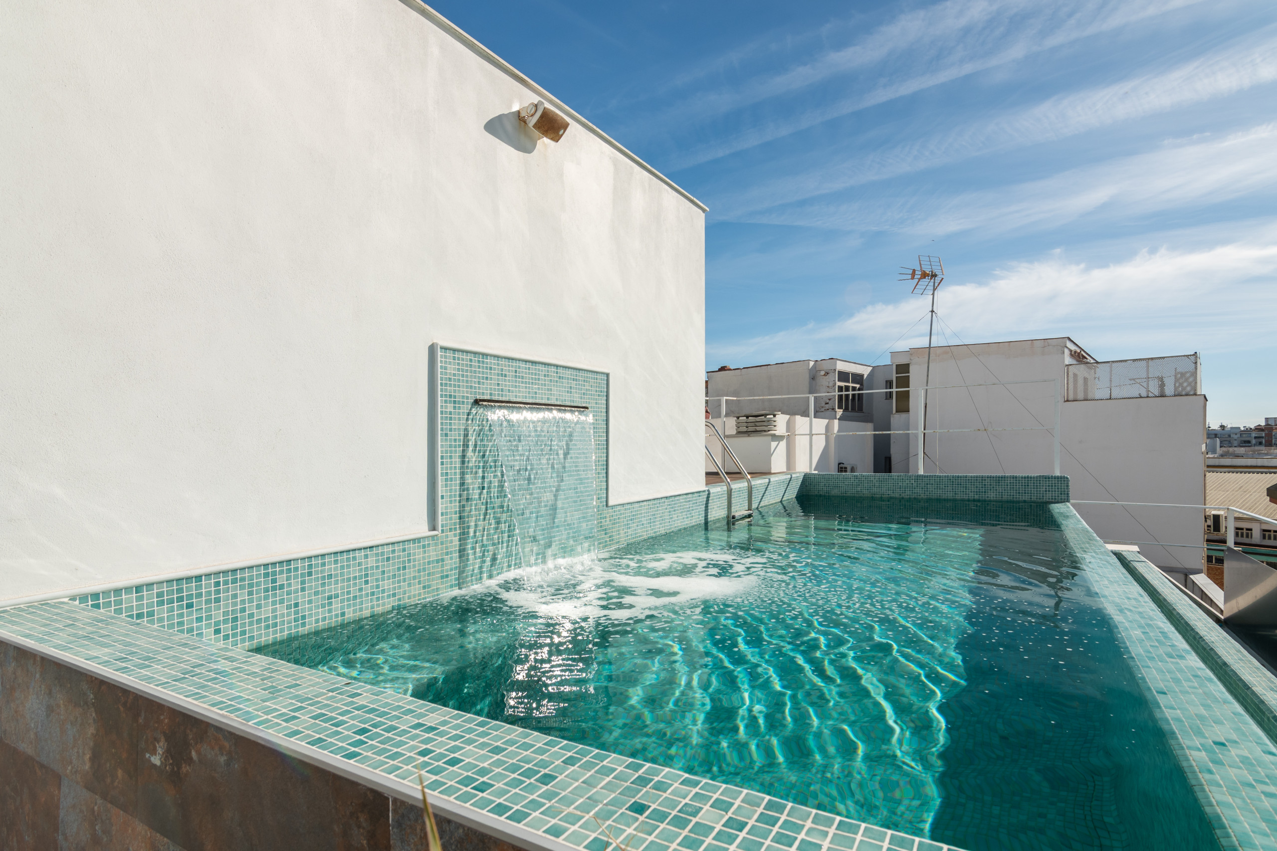 El apartamento cuenta con una piscina compartida de 7x2.8m, ideal para refrescantes momentos en pareja durante los días calurosos. El interior está completamente equipado con aire acondicionado y calefacción por bomba de calor para garantizar tu confort en cualquier época del año.