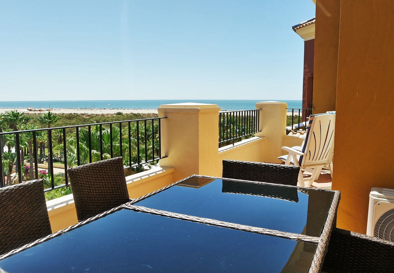 Alojamiento de 90 m² coqueto, moderno y totalmente equipado. Dispone de una amplia terraza exterior con cenador ideal para familias y reuniones. Desde su terraza podrá visualizar el puerto deportivo de Marina Isla Canela, las marismas de Isla Cristina y la amplia playa de Punta del Moral.
