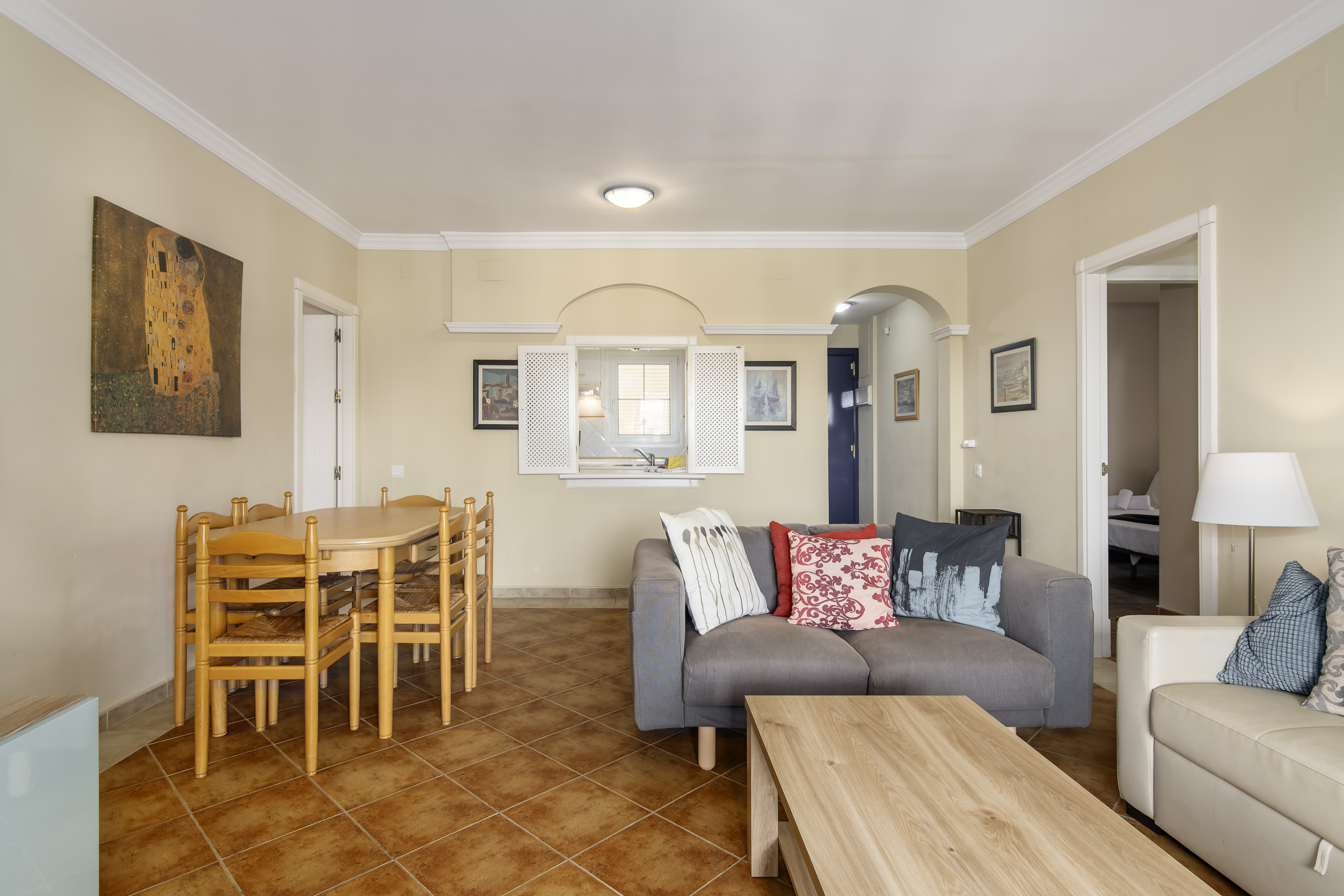 La ubicación, la terraza y el piso en general. El complejo precioso. Supermercado y chiringuitos al lado.