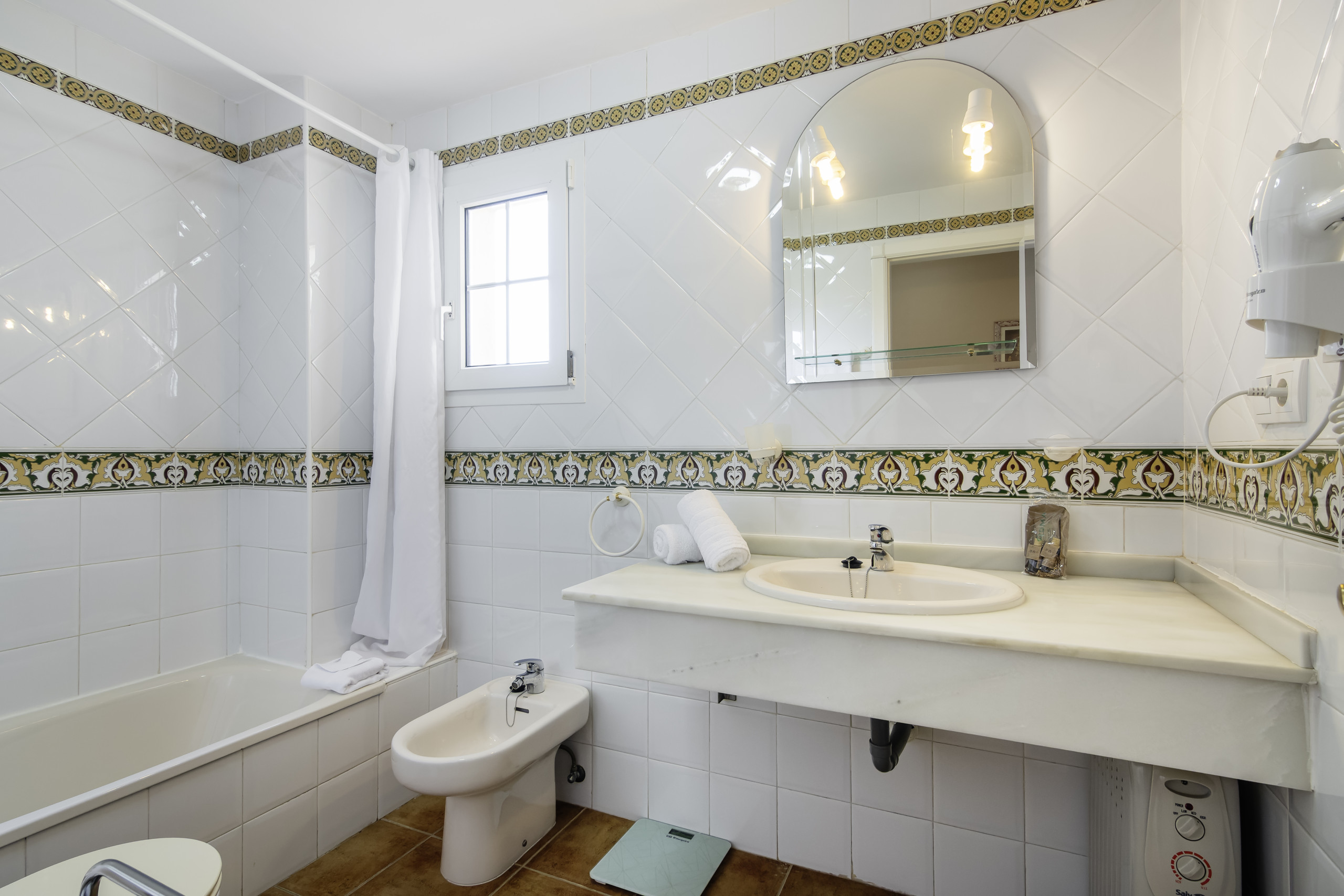 Tilbyder elevator, terrassemøbler, indhegnet grund, terrasse 25 m², vaskemaskine, strygejern, internet (wifi), hårtørrer, børneområde, tennisbane, padelbane, elektrisk varmen, aircondition i hele ferielejligheden, swimming pool communal infantile, overdækket parkering til den samme bygning, TV.