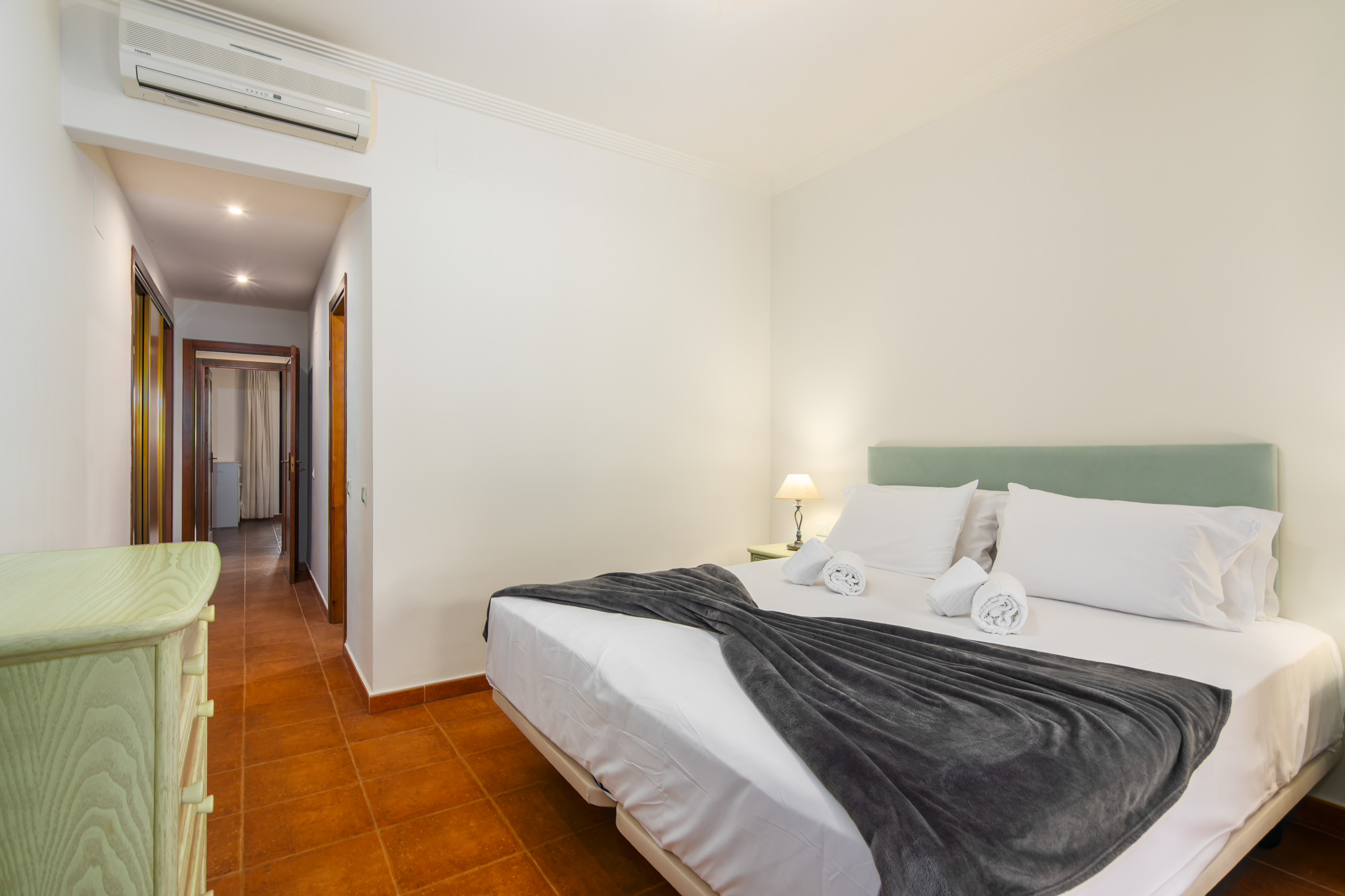 Tilbyder have, terrassemøbler, terrasse 40 m², vaskemaskine, strygejern, internet (wifi), hårtørrer, børneområde, tennisbane, varmepumpe, aircondition, swimming pool fælles, utildækket parkering til den samme bygning, 1 TV.