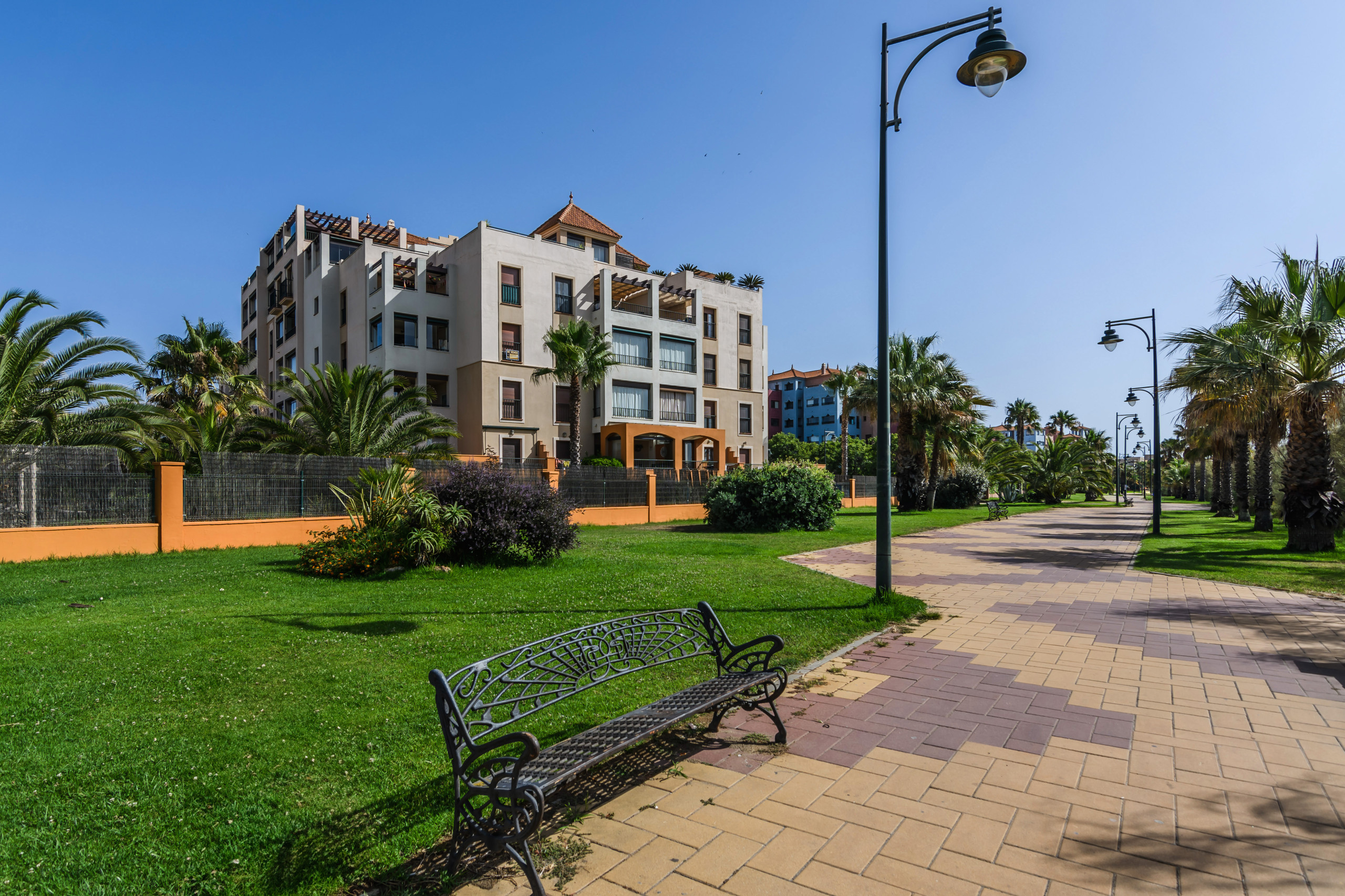 Tilbyder elevator, have, terrassemøbler, indhegnet grund, terrasse 9 m², vaskemaskine, strygejern, internet (wifi), hårtørrer, børneområde, padelbane, varmepumpe, aircondition i hele ferielejligheden, swimming pool communal infantile, overdækket parkering til den samme bygning, 1 TV.