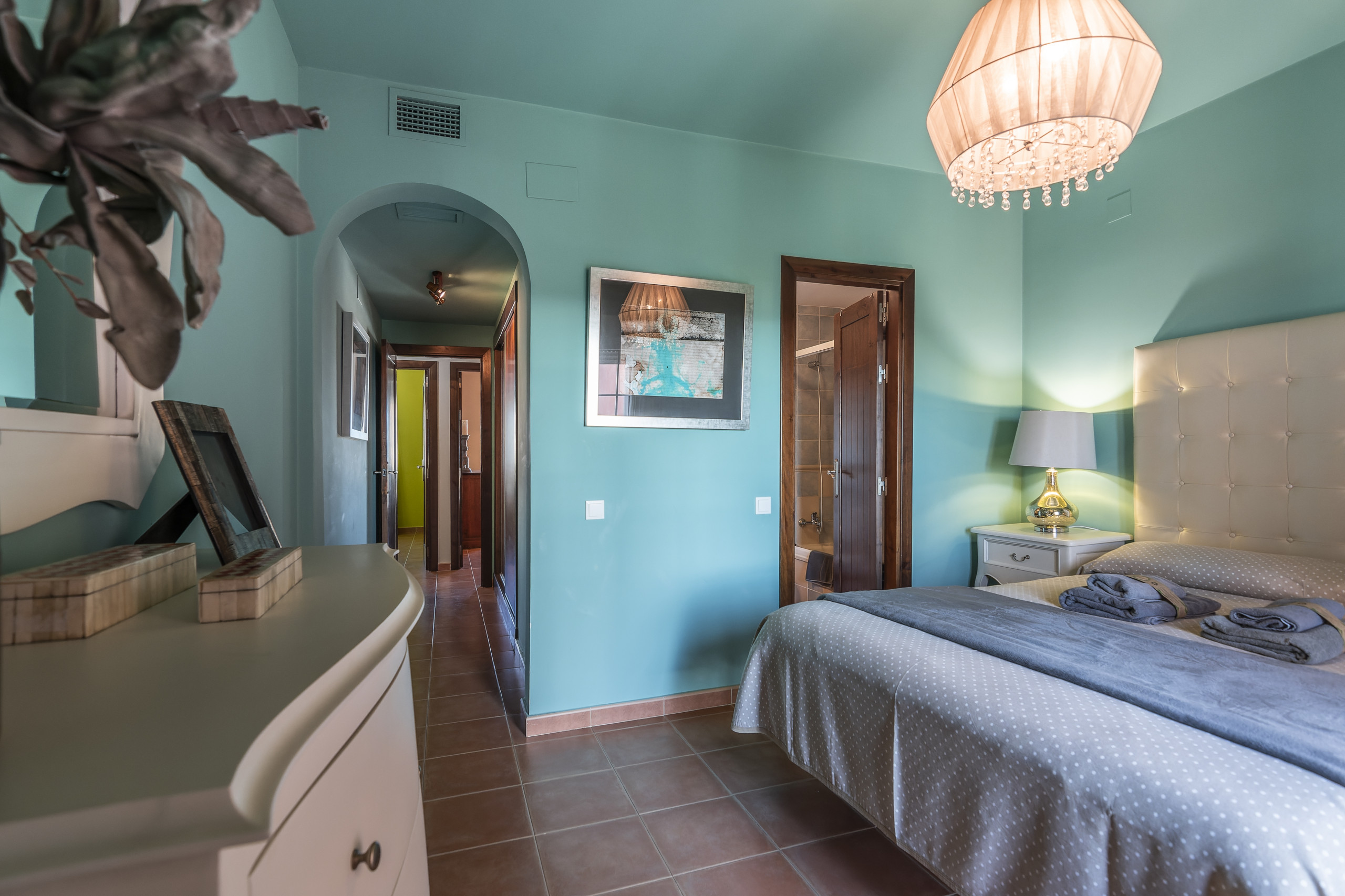Es bietet Platz für 7 Personen und verfügt über 3 Schlafzimmer mit 1 Doppelbett, 3 Einzelbetten und einem Etagenbett, ideal für Familien oder Gruppen von Freunden. Es verfügt über 2 Badezimmer, eines mit Dusche und das andere mit Badewanne, was das Zusammenleben während des Aufenthalts erleichtert.