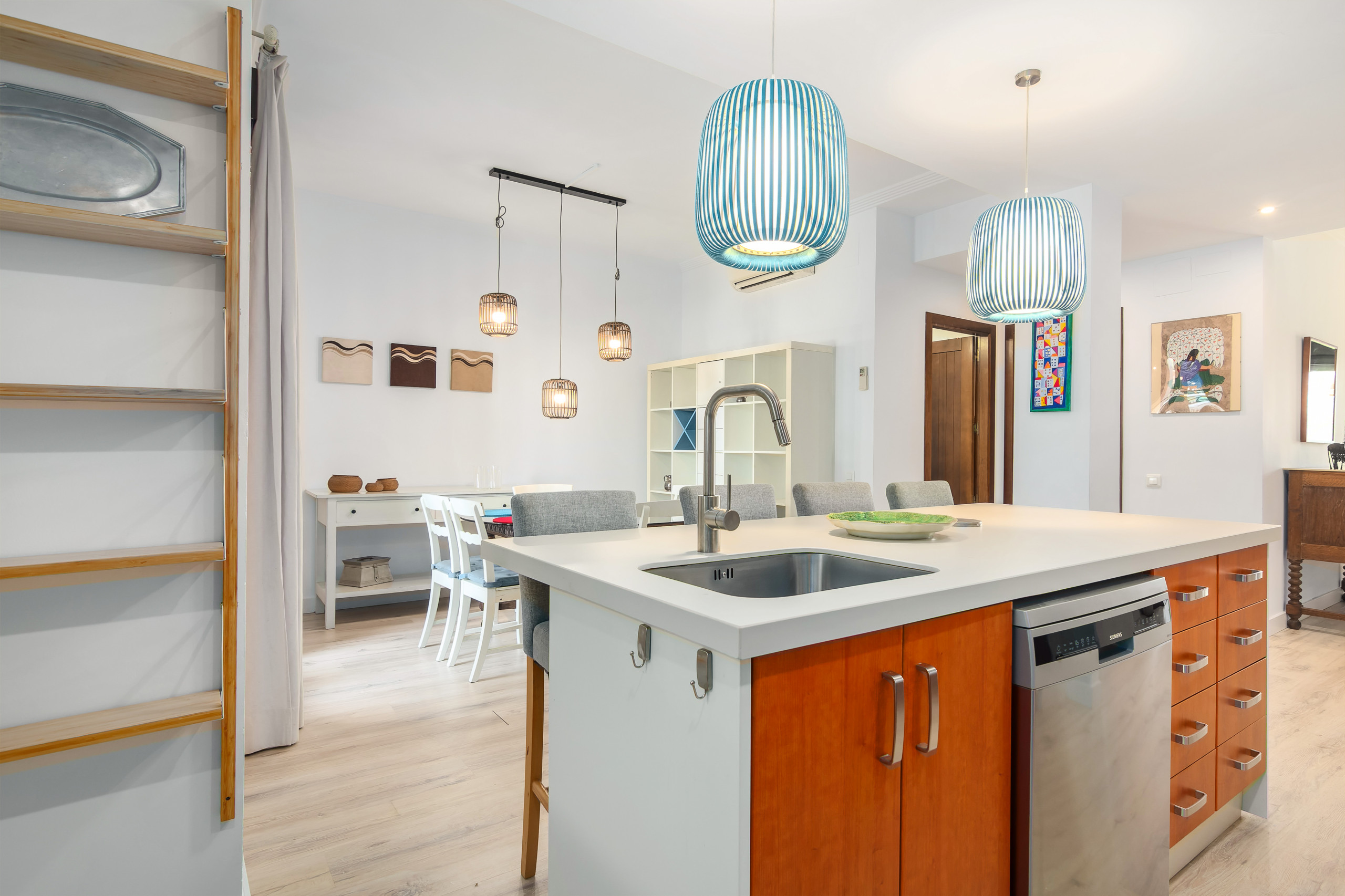 De woning is volledig uitgerust met airconditioning, warmtepomp verwarming, WiFi en een open keuken die volledig is ingericht met apparaten zoals een wasmachine, vaatwasser, oven, magnetron en koffiezetapparaat. De woonkamer beschikt over een tv en een strijkplank voor extra comfort.