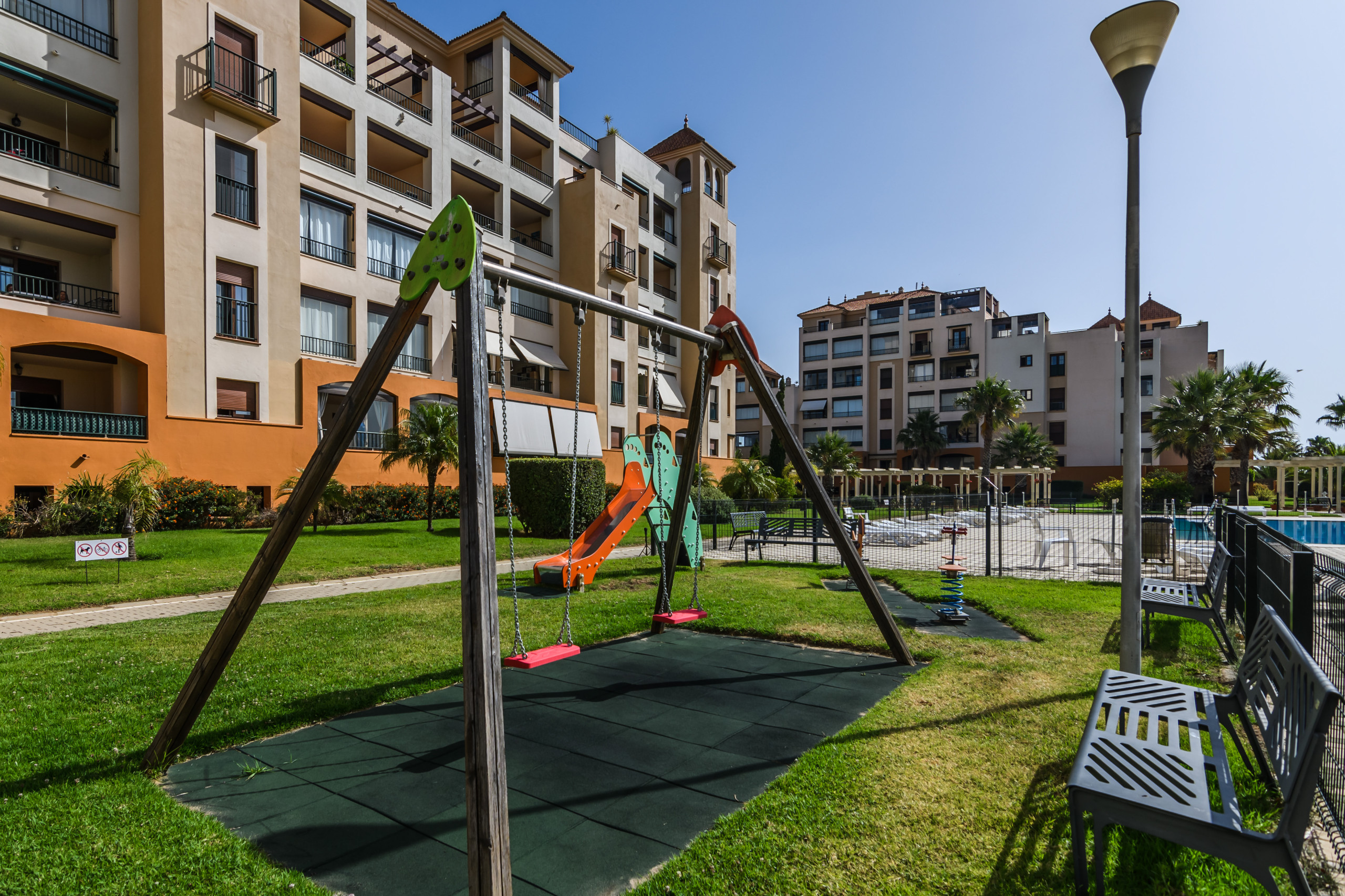 Tevens heeft u de beschikking over Lift, Tuin, Tuinmeubilair, Omheind perceel, 9 m² terras, Wasmachine, Strijkijzer, Internet (wifi), Haardroger, Zone voor kinderen, Padelbaan, Warmtepomp, Airconditioning in de gehele woning, Gemeenschappelijk Kind Zwembad, Overdekte parkeerplaats in het zelfde gebouw, 1 Televisie.