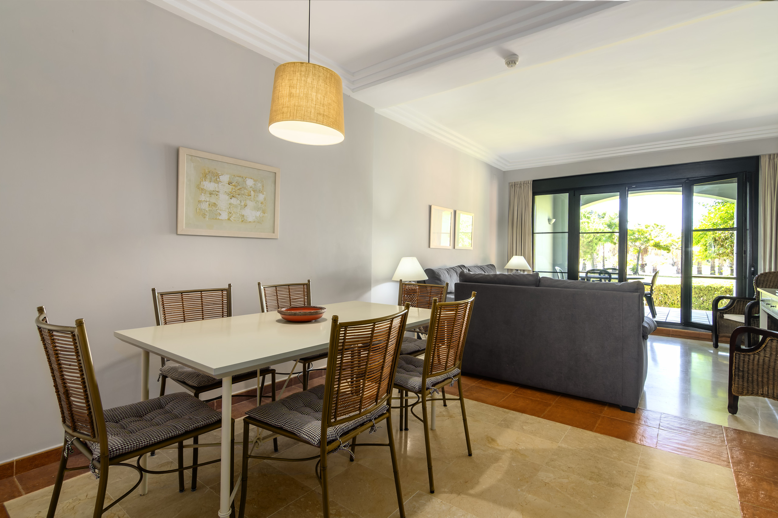 Comfortable and fully equipped accommodation of 70 m², located on the first line of the golf course, overlooking the garden and the golf course. It has 2 bedrooms and has capacity for 5 people. It is located 50 m from the golf course, 3 km from the sandy beach, 3 km from the supermarket and is located in an ideal area for families and within an urbanization. The accommodation is equipped with the following items: garden furniture, fenced garden, 20 m² terrace, iron, internet (Wi-Fi), hair dryer, paddle tennis court, air conditioning (hot/cold), air conditioning throughout the house, communal + children's swimming pool, open-air parking in the same building, TV. In the vitroceramic independent kitchen, refrigerator, microwave, oven, freezer, washing machine, dishwasher, dishes/cutlery, kitchen utensils, coffee machine and toaster are provided.9 reviews