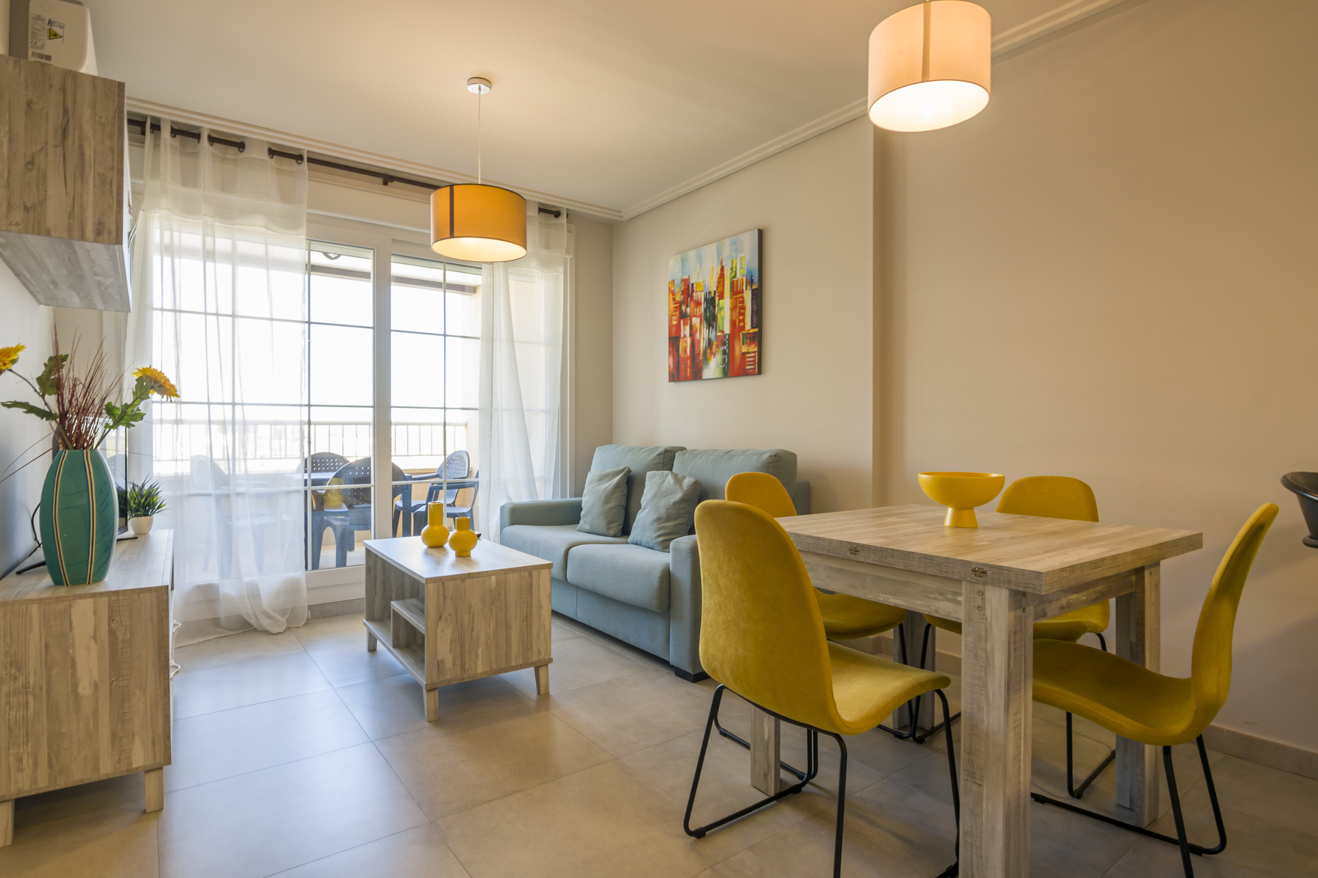 Comfortable and fully equipped accommodation of 70 m², located on the first line of the golf course, overlooking the garden and the golf course. It has 2 bedrooms and has capacity for 5 people. It is located 50 m from the golf course, 3 km from the sandy beach, 3 km from the supermarket and is located in an ideal area for families and within an urbanization. The accommodation is equipped with the following items: garden furniture, fenced garden, 20 m² terrace, iron, internet (Wi-Fi), hair dryer, paddle tennis court, air conditioning (hot/cold), air conditioning throughout the house, communal + children's swimming pool, open-air parking in the same building, TV. In the vitroceramic independent kitchen, refrigerator, microwave, oven, freezer, washing machine, dishwasher, dishes/cutlery, kitchen utensils, coffee machine and toaster are provided.9 reviews
