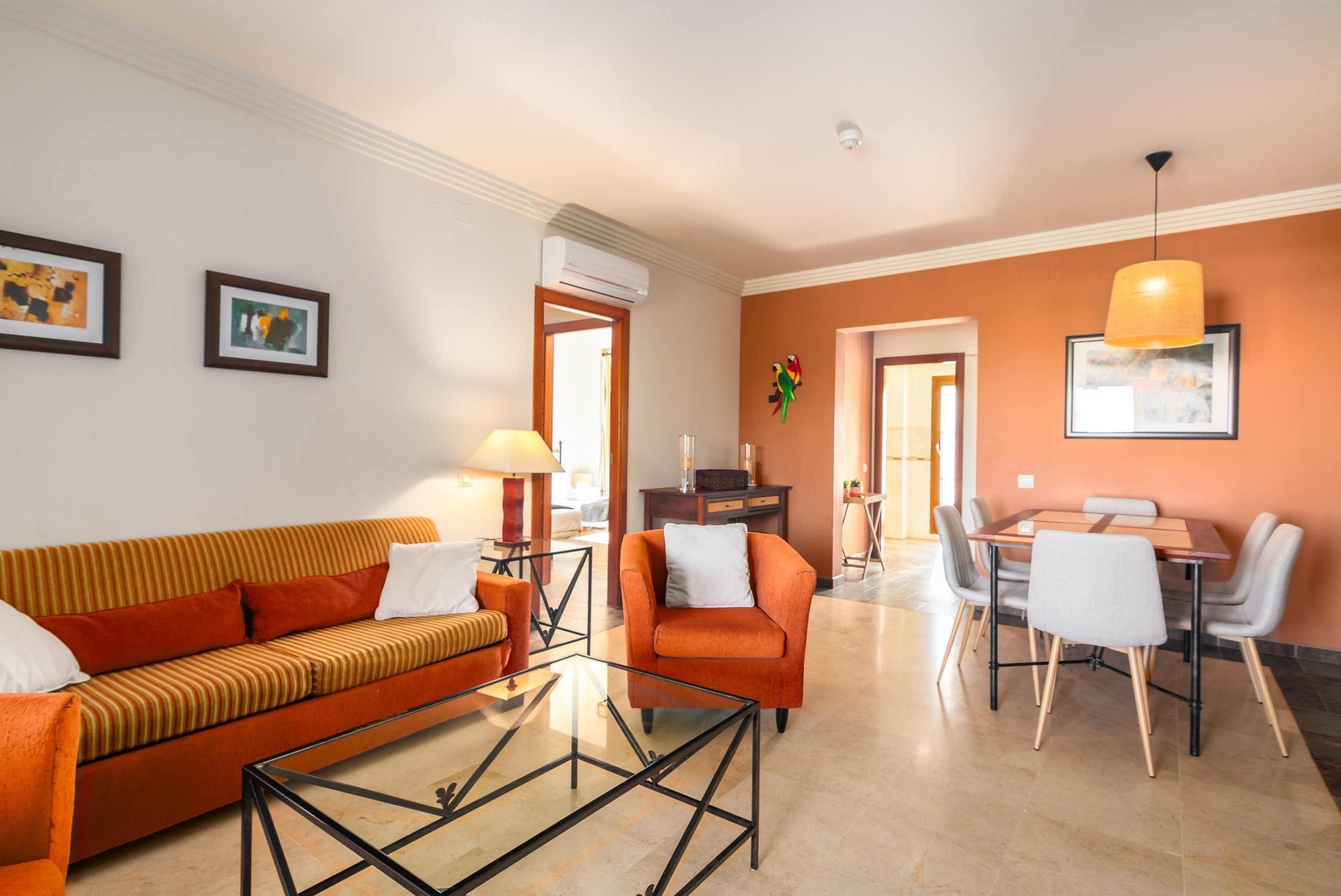 Alojamento de 112 m² confortável e totalmente equipado, localizado na primeira linha do campo de golf, com vistas para a piscina.